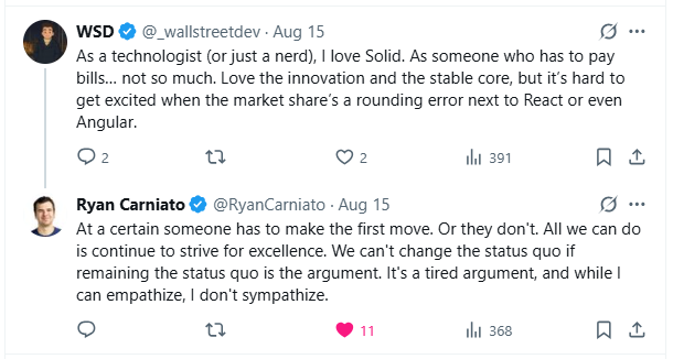 Ryan Carniato, the creator of Solid.js, responded directly to such concerns. His point was clear:
